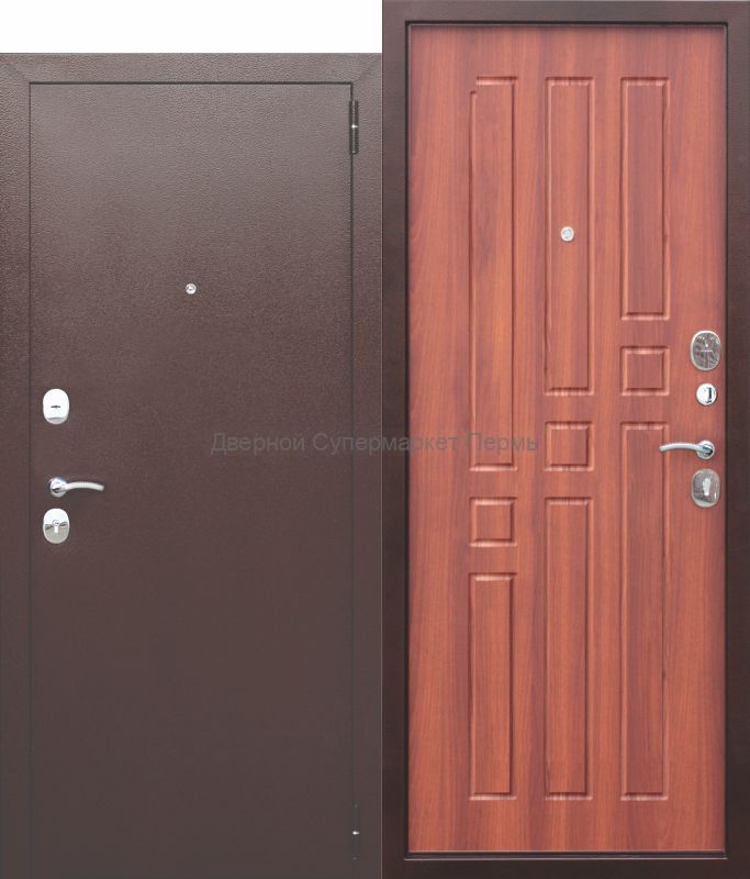 Входная металлическая дверь Бридж 8мм. с листом металла толщиной 1.5 мм. и утеплителем Пенополистирол. Эта модель в среднем ценовом сегменте и подходит для установки как в квартиру, так и в комнату общежития.