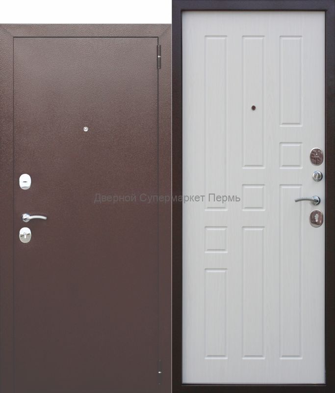 Входная металлическая дверь Бридж 8мм. с листом металла толщиной 1.5 мм. и утеплителем Пенополистирол. Эта модель в среднем ценовом сегменте и подходит для установки как в квартиру, так и в комнату общежития.