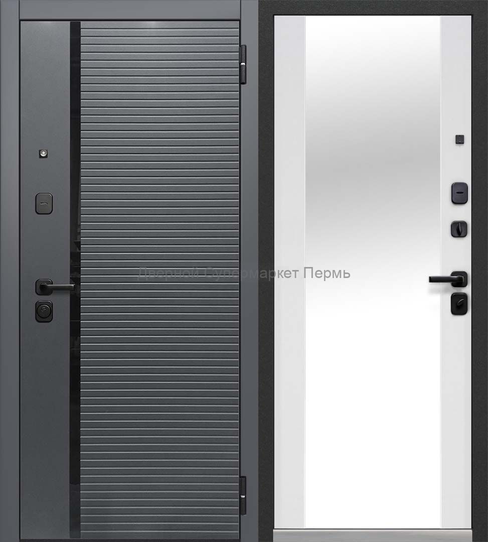 Входная дверь в квартиру с зеркалом Luxor 2МДФ Горизонталь Зеркало Эмалит Белый