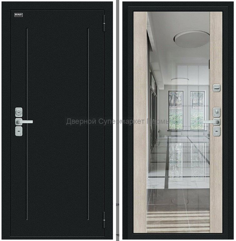 Глори Букле черное/Cappuccino Veralinga входная дверь Премиум класса с зеркалом