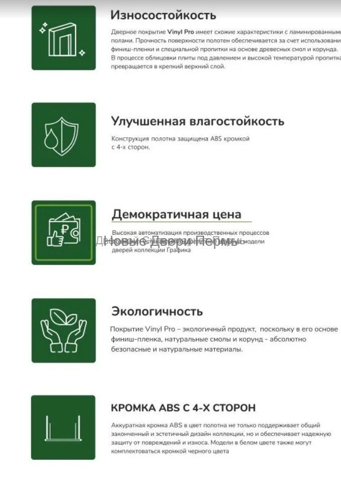 - Доступная цена: Автоматизированное производство позволяет предлагать двери "Графика" Vinyl Pro по демократичным ценам.