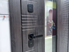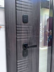 Внешняя отделка: МДФ 10 мм графит Наличники мдф стандартные. Полимерно-порошковое покрытие черный муар. Наличники мдф стандартные. Внутреняя отделка: МДФ 10 мм, белый. Заполнение полотна: Базальтовая плита и ППС. Толщина дверного полотна 105мм , 4х камерный стеклопакет (графит 2 крайних стекла), 3 петли, 3 контура уплотнителя. Замковая система: Основной-врезной сувальдный BORDER Термо. Дополнительный замок врезной сувальный BORDER Термо. Ночная независимая задвижка. Ручка – Раздельная (черный) Порог из нержавеющей стали