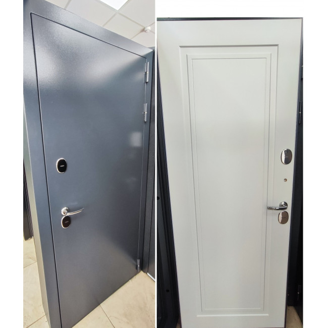 Дверь металлическая ТЕРМО Шагрень серая НЕО 10 Белый матовый