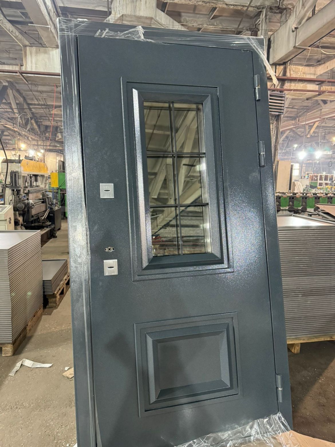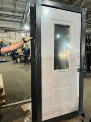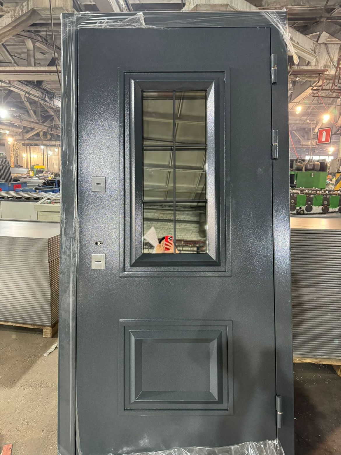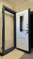 Двери с терморазрывом графит, изготовленным из ПВХ пластика, имеющего низкий коэффициент теплопроводности препятствуют промерзанию двери при низких температурах. • Терморазрыв: двухкамерный спейсер по полотну и коробу 24 мм • Наполнение: PIR-плита