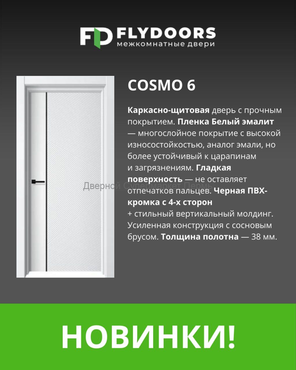 Дверь Cosmo 6, кромка ПВХ черная с 4х сторон, молдинг алюминий черный