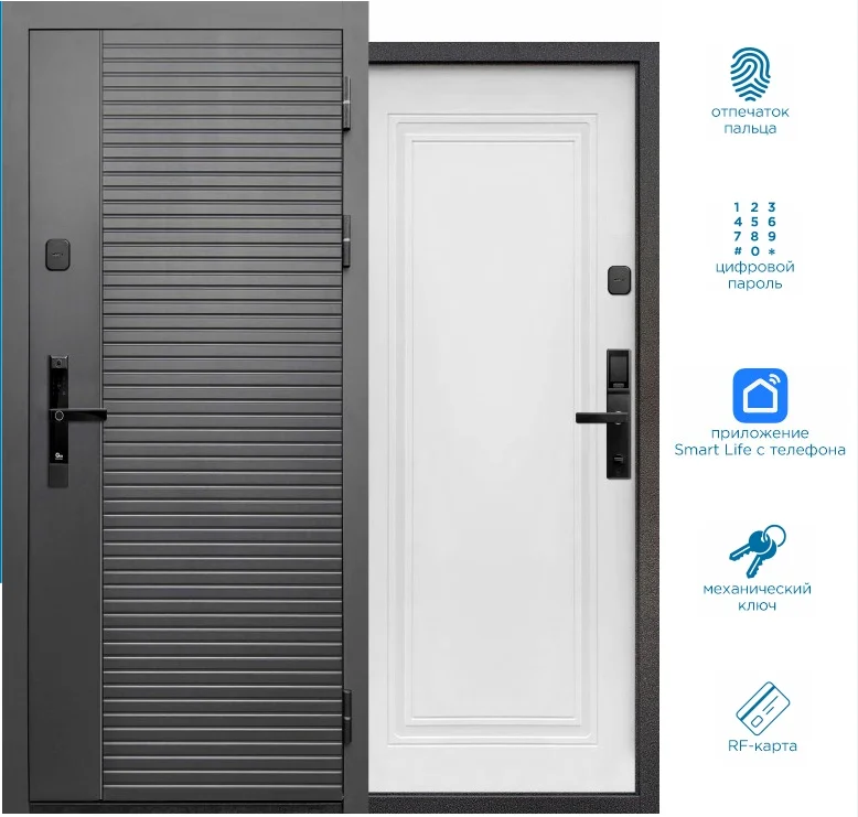 Е-Тайга 10см МДФ/МДФ Белый ясень УМНЫЙ ЗАМОК 880х2050 мм, 980х2050 мм