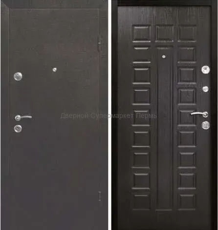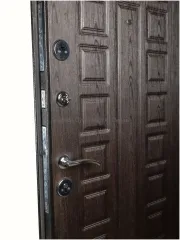 Внешнее покрытие: атмосферостойкое порошковополимерное «медный антик» Внутреннее покрытие: фрезерованная МДФ-панель 8 мм, цвет - «золотистый дуб», «карпатская ель», «венге» Толщина дверного полотна: 68 мм Глубина дверного короба: 90 мм Наполнитель: пенополистирол Уплотнитель: 2 контура уплотнителя из вспененной резины Ручка: раздельная; цвет - хром Глазок: широкого обзора, цвет - хром Петли: 2 шт., наружные, открывание 180° Основной замок: цилиндровый RIGGER, диаметр ригелей: 16 мм Дополнительный замок: сувальдный RIGGER, диаметр ригелей: 16 мм Броненакладки: круглые с защитой от сквозняка, на оба замка; цвет - хром Независимая ночная задвижка Противосъём: штыри, 2 шт. Размеры: 860х2050 мм, 960х2050 мм