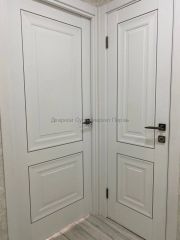 Покрытие - экошпон бескромочная царговая (стоевые дверей изготовлены из переклеенного массива сосны)