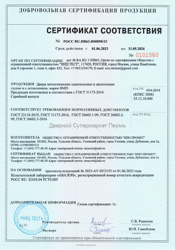Дверь комплектуется цилиндровым замком Просам 3В4-31/55 с цилиндром 70мм.