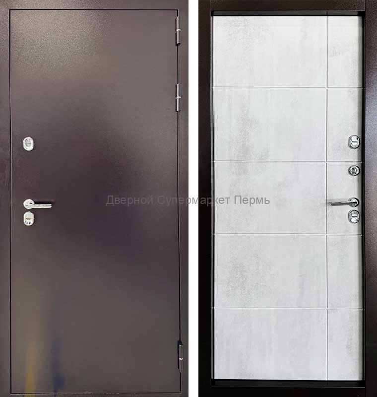 • Дверь входная Страж ДС 3К Тепло Бетон серый с Терморазрывом изготовлена из металла толщиной 1,5 мм с полимерно-порошковым покрытием, цвет Медный антик.