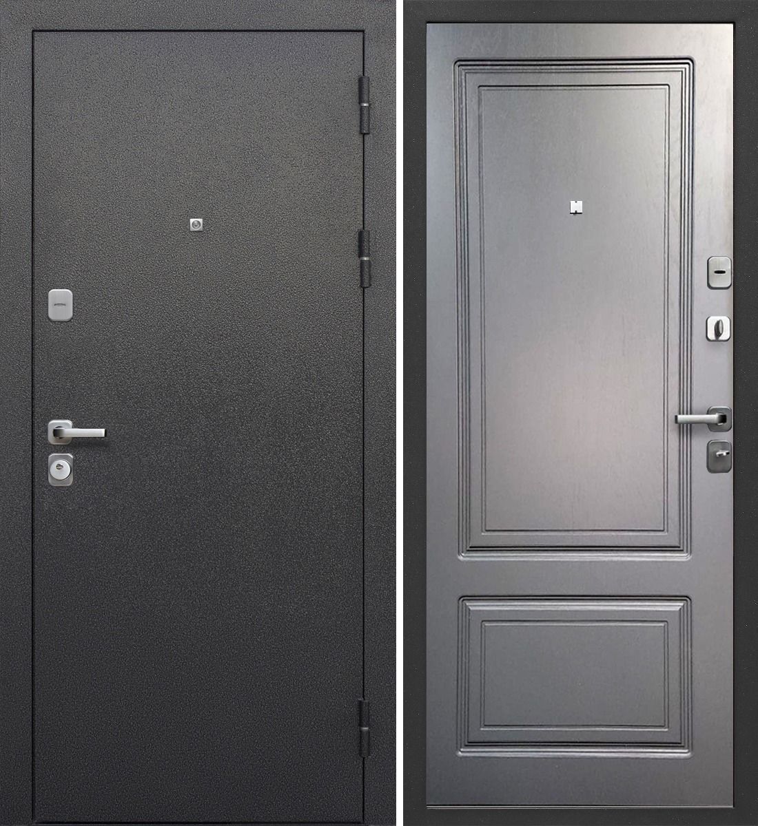 Внешнее покрытие атмосферостойкое порошково-полимерное «Букле черный» Внутреннее покрытие фрезерованная МДФ-панель 10 мм, цвет – Ясень графи эмаль Толщина дверного полотна 90 Глубина дверного короба 117 Наполнитель - ППС Уплотнитель 3 контура уплотнителя из вспененной резины (2 на полотне, 1 на коробе)