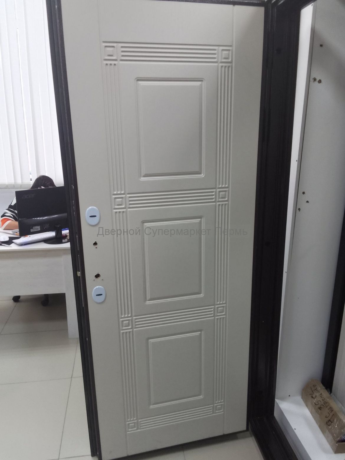 - Дверная коробка усиленная 130мм из цельногнутого профиля, три контура уплотненителя, одна дополнительная петля. Наличник П-обр. шириной 75мм; Толщина металла дверного полотна и коробки с полимерно-порошковым покрытием 1,5 мм; Вставка полиамидного термо-профиля