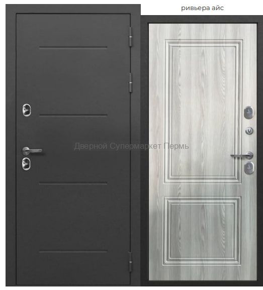 Внешнее покрытие: атмосферостойкое порошково-полимерное «антик серебро» Внутреннее покрытие: МДФ-панель 8 мм, цвет – «ривьера айс», «дуб пацифик» Толщина дверного полотна: 110 мм Глубина дверного короба: 137 мм Терморазрыв 24 мм: двухкамерный спейсер из ПВХ Наполнитель: пенополистирол Уплотнитель: 3 контура уплотнителя из вспененной резины (2 на полотне, 1 на коробе) Ручка: раздельная; цвет - хром Петли: 3 шт., наружные, открывание 180° Основной замок: сувальдный MANGYST*, IV (наивысший) класс взломостойкости, дополнительная защита от высверливания: две пластины из высоколегированной стали с обеих сторон замка; диаметр ригелей: 16 мм Дополнительный замок: сувальдный MANGYST*, IV (наивысший) класс взломостойкости, дополнительная защита от высверливания: две пластины из высоколегированной стали с обеих сторон замка; диаметр ригелей: 16 мм Накладки: овальные с защитой от сквозняка; цвет - хром Независимая ночная задвижка Регулировка прижима притвора: металлический эксцентрик для защёлки на основном замке Противосъём: штыри, 2 шт. Размеры: 860х2050 мм, 960х2050 мм