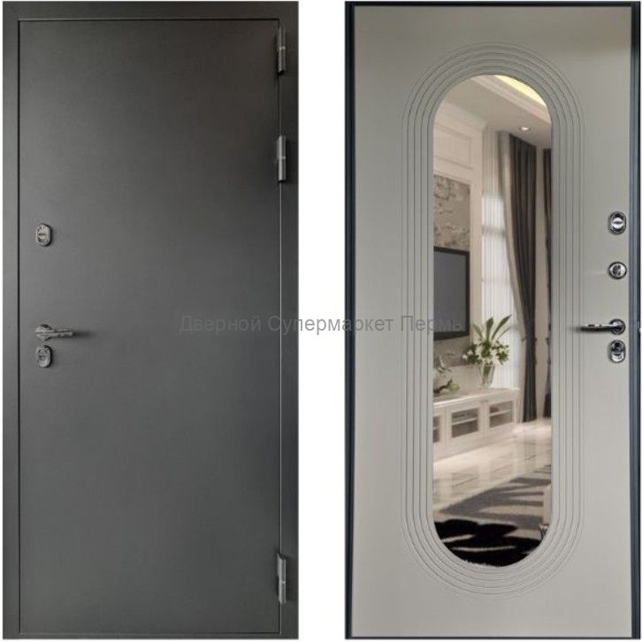3К Тепло Овальное зеркало RAL 7024 графит дверь входная