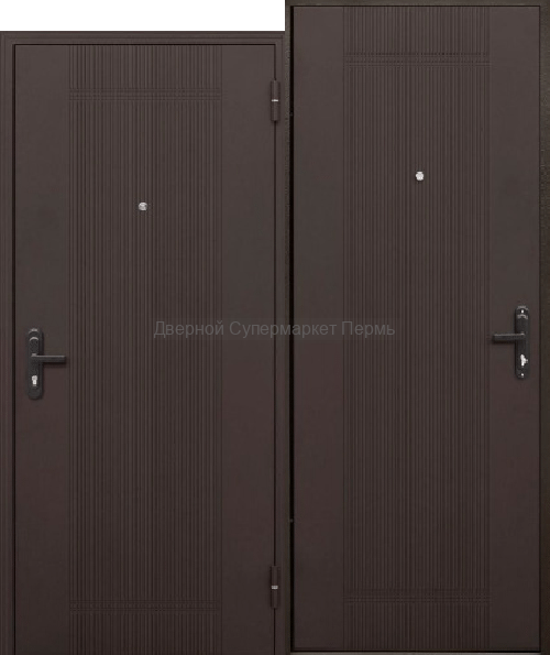 ПОКРЫТИЕ: металл/металл Внешнее: атмосферостойкое порошково-полимерное «Медный Антик» Внутреннее: атмосферостойкое порошково-полимерное «Медный Антик» ЗАМОК: Цилиндровый НТО-ЛУЧ, диаметр ригелей: 14 мм Толщина дверного полотна: 50 мм Наполнение: Жесткий ячеистый гофрокартон Уплотнитель: 2 контура уплотнителя из вспененной резины Ручка: на планке Глазок: широкого обзора Петли: 2 шт., наружные