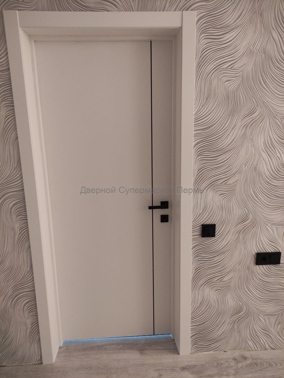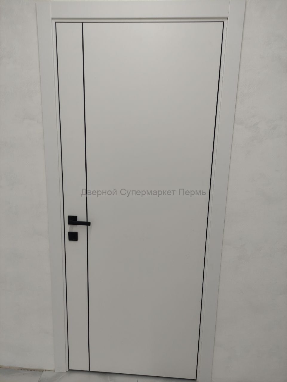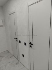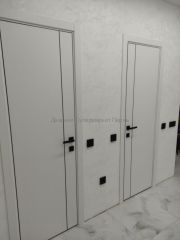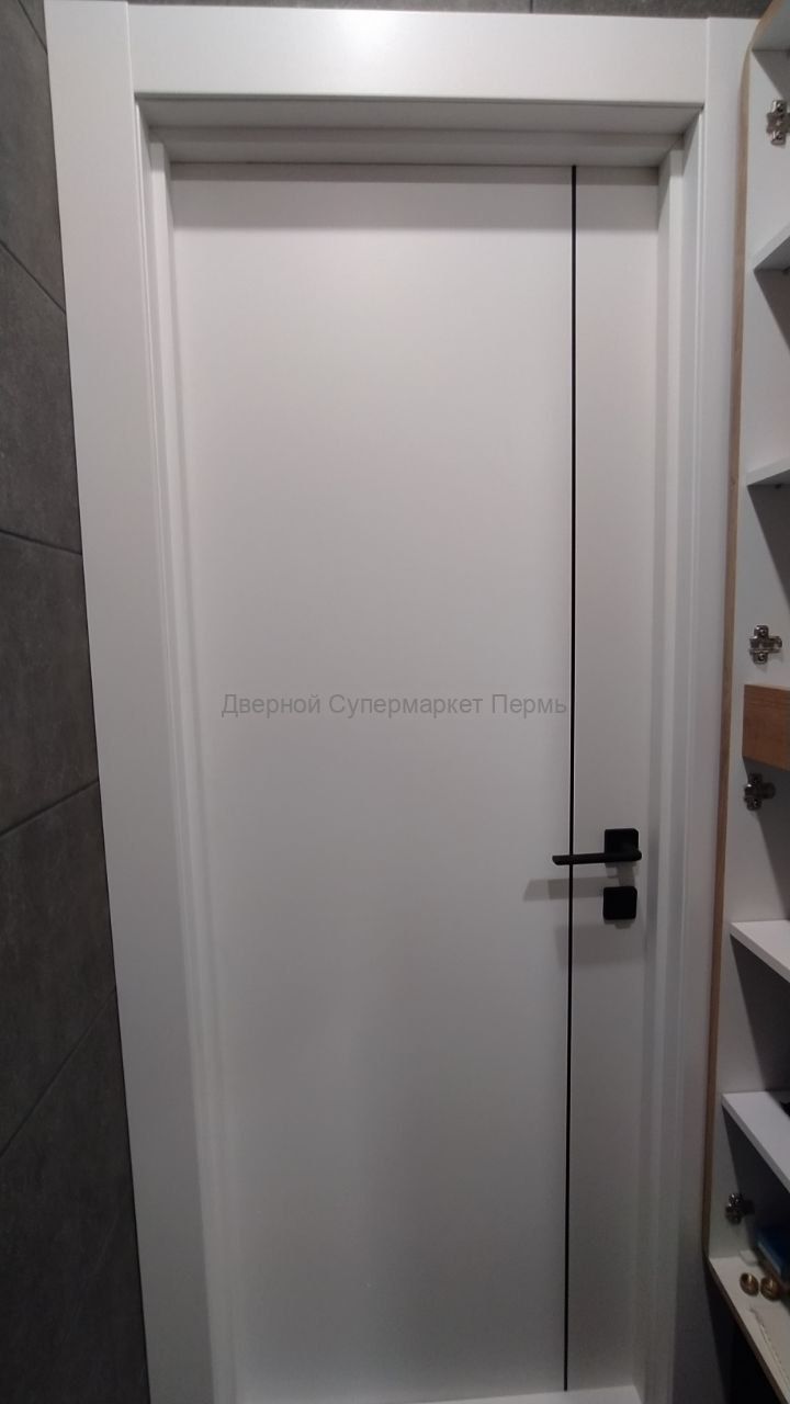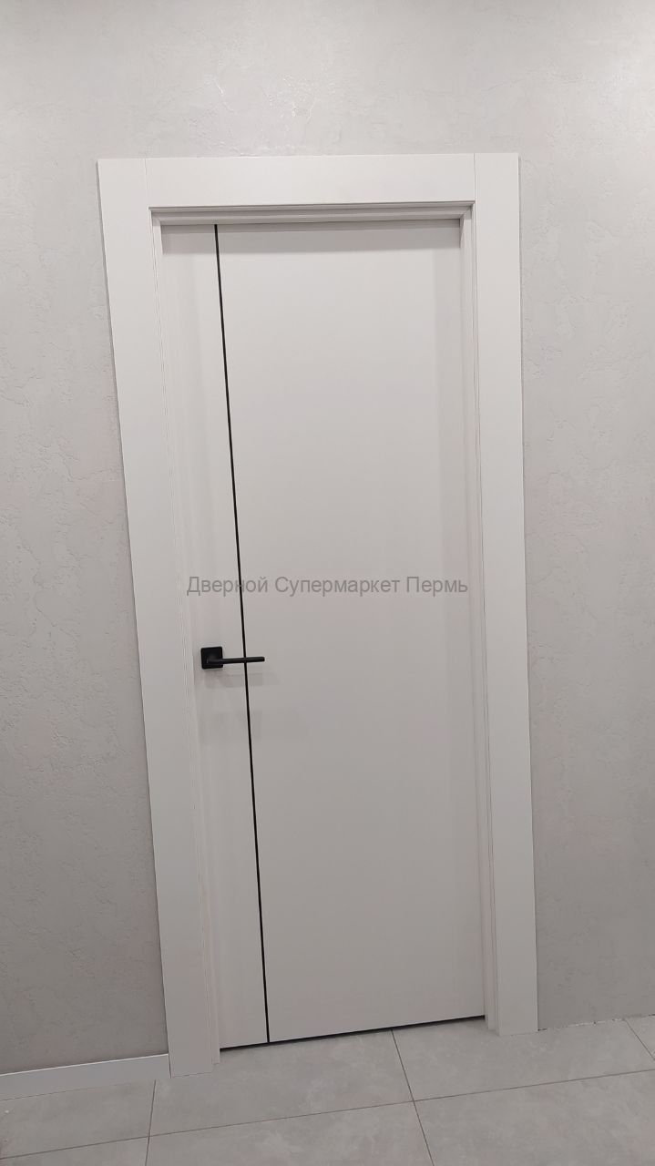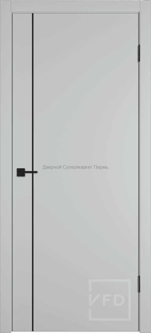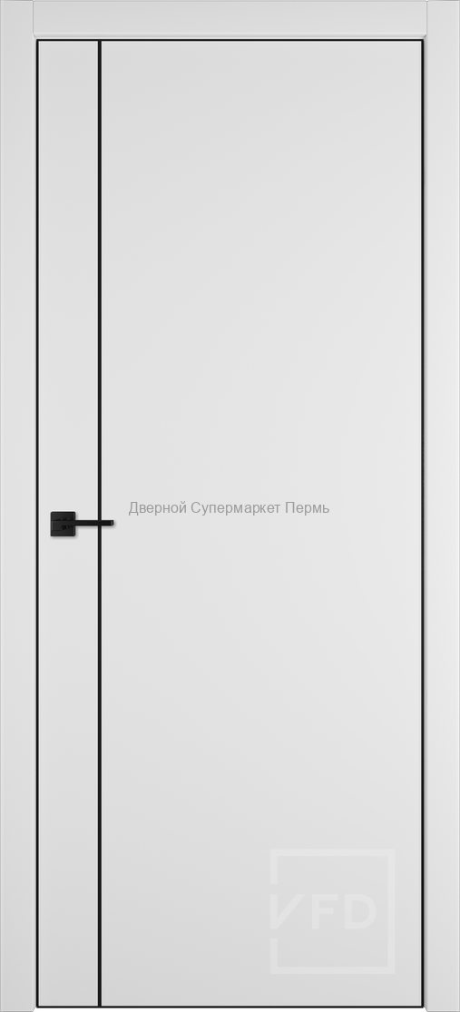 Межкомнатная дверь Basic 1V Emalex Ice ABS black Black mould (ЗПЗм1) - кромка и молдинг черного цвета с врезкой под защелку - дверь в стиле минимализм новой серии Basic. Покрытие: экошпон Emalex.