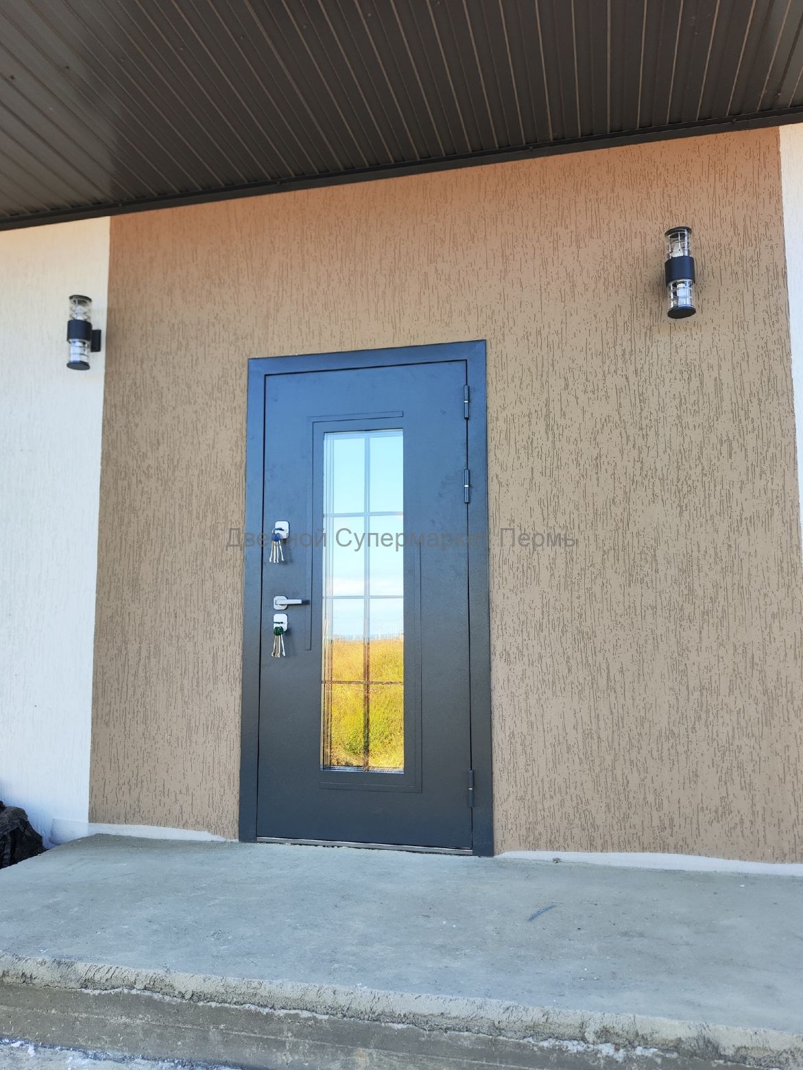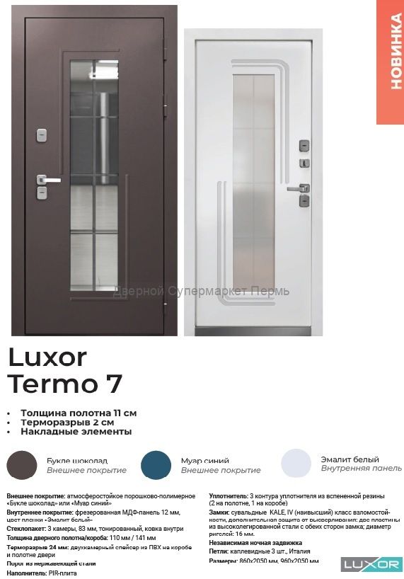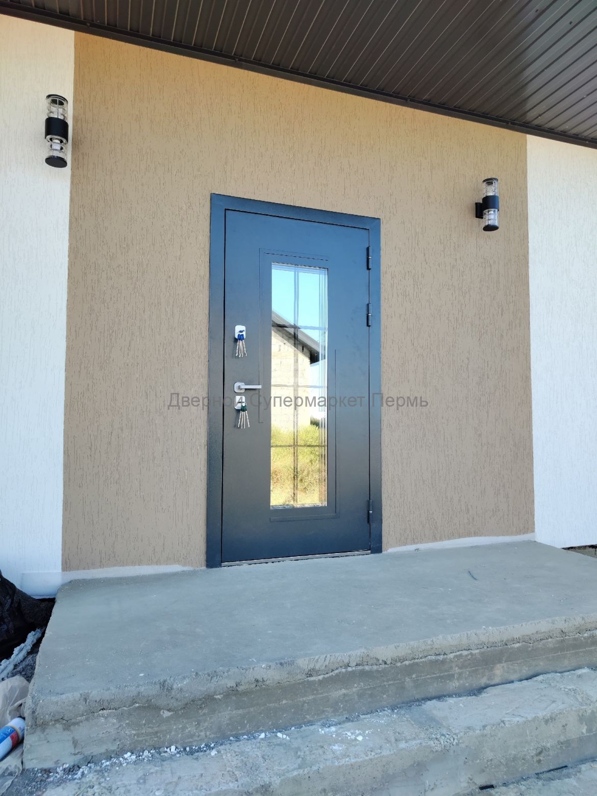 Входная уличная дверь Luxor Termo 7 для загородного дома с терморазрывом и стеклопакетом, толщина стали 1.5 мм, толщина дверного полотна 110 мм, наружная расцветка Антрацит букле.