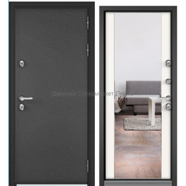 TERMO STANDART MP Антрацит букле Белый софт 10T-164 mirror дверь с Терморазрыво с зеркалом