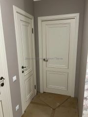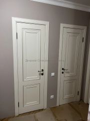 Элегантность и в то же время простоту содержит модель «Прадо» в цвете ваниль винил от фабрики Альберо. Вертикальные багетные вставки из МДФ в глухой двери и из матового стекла с рисунком в остекленной делают вашу квартиру более светлой и просторной.